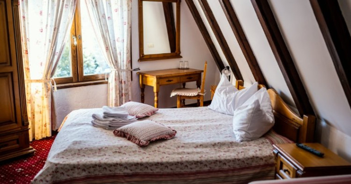 Restaurantul locatiei cu o capacitate de 50 de locuri ofera preparate cu specific traditional si este deschis pentru mic dejun, pranz si cina. De asemenea se pot organiza evenimente la cerere.