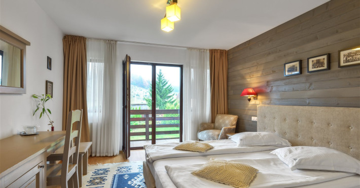 Cauti linistea la care visezi de atata timp? Iti doresti privelisti care sa iti taie respiratia? Ai nostalgia mancarurilor savuroase traditioanale si sanatoase cu care au crescut bunicii nostri? Daca raspunsul tau este da, atunci ai gasit locul unde aceste dorinte se pot materializa. Vei intalni localitatea Fundata pe culoarul Rucar-Bran, situandu-se la o distanta de 14 km de castelul Bran si la aprox. 40 km. de Brasov. Cheile Gradistei le vei intalni la 20 minute de noi. Cunoscatorii stiu ca peisajul natural si antropic din Fundata, spre deosebire de Bran si Moeciu, este mult mai deschis, mai rustic, cu privelisti incantatoare. Aici in sat vei descoperi pensiunea Casa Muntelui****, care va deveni casa ta departe de casa. Este locul in care vii sa te relaxezi si sa te bucuri de un peisaj montan spectaculos, de o localitate care si-a pastrat puritatea, traditiile si farmecul pe care-l cauti mereu in clipele tale de vacanta. Te vei bucura de natura indiferent daca ai ales Casa Muntelui**** pentru recreere sau pentru un eveniment business, pentru o zi de nastere sau pentru zilele tale de miere, atat de dorite dupa o nunta ca-n basme. Si pentru ca vii la munte iti oferim posibilitatea sa escaladezi varfurile din Bucegi, Piatra Craiului si Fagaras, cu alte cuvinte sa fii oaspete in camerele noastre care poarta numele celor mai inalte varfuri de peste 2200m din judetul Brasov.Datorita dinamicitatii domeniului disponibilitatea ofertelor se modifica de la un moment la altul. De aceea ofertele sunt valabile in limita locurilor disponibile. Agentia nu este responsabila pentru eventualele neconcordante care pot aparea intre informatiile privind tarifele si alte detalii din site si informatiile primite in agentie. In aceste cazuri vor avea prioritate, intotdeauna, informatiile primite in agentie.