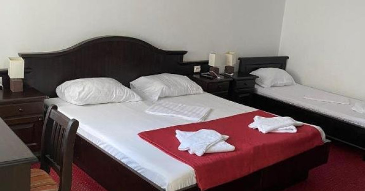 Camera tripla este spatioasa si luminoasa, cu pat dublu matrimonial si un pat single, baie proprie, aer conditionat TV si internet wireless.
