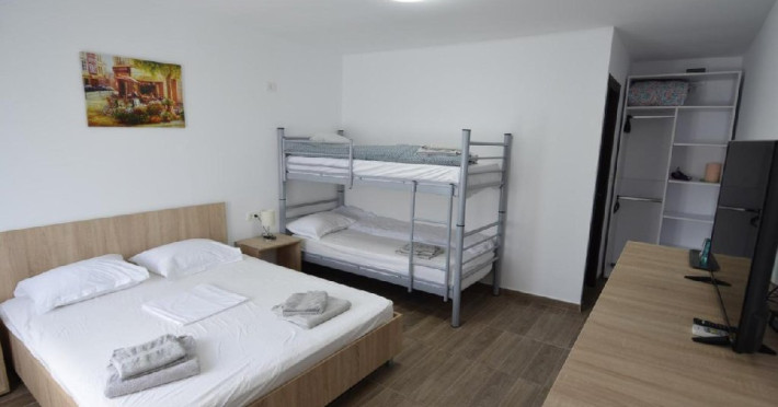 Camerele de 4 persoane sunt spatioase, cu un pat dublu de 1,6 x 2m si cu 2 paturi single suprapuse, fiecare de 90 x 2m, cu AC, TV, uscator de par, fierbator de apa, mini-frigider. Baile sunt si ele spatioase, cu dus walk-in.