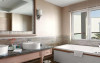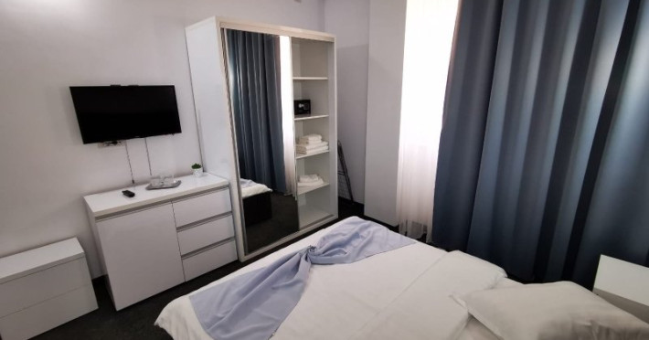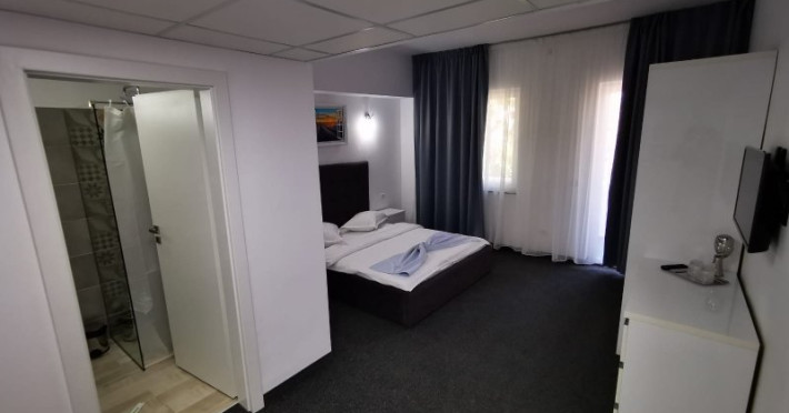 Toate camerele sunt dotate modern si elegant cu: Tv LCD, frigider minibar, baie proprie dus, AC, internet wireless, seif in camera, uscator de par.