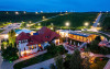 Restaurante: Restaurantul Veranda cu bucatarie mediteraneana, Restaurantul Conac cu bucatarie romaneasca, noul Restaurant Rotonda cu bucatarie italiana si barul englezesc.