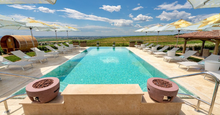 CHARDONAY - 40MP, Pat King size, Canapea extensibila, Semineu, Minibar, Espressor,, fiertabor, Seif, Uscator de par, Cosmetice de baie, Halat de baie, Aer coditionat, Incalzire in pardoseala, Terasa interioara, Gradina privata, Balansoar, Room service.
