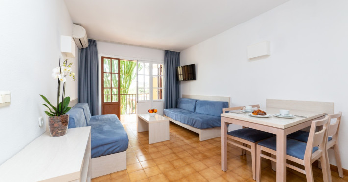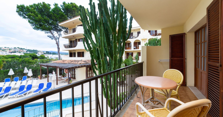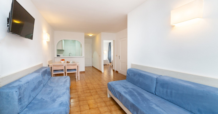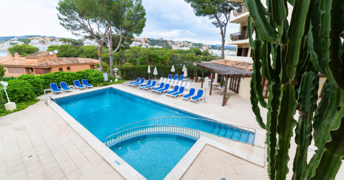 This apartment complex is located in Santa Ponsa, just 200 m from the resort centre and 250 m from the nearest beach. It comprises a total of 26 apartments and facilities include a foyer, a lift, a bar, a TV room and a restaurant. The apartments feature a combined bedroom/lounge, a separate bedroom, a fully equipped kitchen, a terrace and all the necessary amenities. There is a swimming pool, a childrens pool, a poolside snack bar and a sun terrace in the outdoor complex. Further leisure options include an indoor pool, a sauna, a gym and a range of massage treatments, all subject to seasonal availability. Breakfast, lunch and dinner are offered in buffet style.Datorita dinamicitatii domeniului disponibilitatea ofertelor se modifica de la un moment la altul. De aceea ofertele sunt valabile in limita locurilor disponibile. Agentia nu este responsabila pentru eventualele neconcordante care pot aparea intre informatiile privind tarifele si alte detalii din site si informatiile primite in agentie. In aceste cazuri vor avea prioritate, intotdeauna, informatiile primite in agentie.