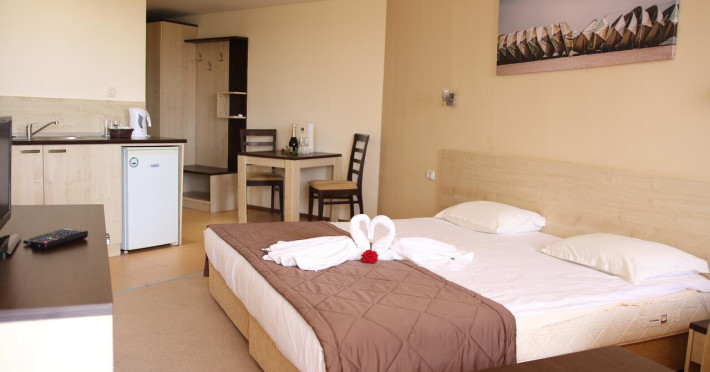 Hotel Casablanca oferă oaspeților posibilitatea de cazare în 90 de apartamente cu un dormitor și 61 de studiouri, ceea ce îl face perfect pentru familiile cu copii. Toate camerele dispun de un pat dublu sau două paturi, twin, o canapea extensibilă și un fotoliu, TV, telefon, acces gratuit la internet, aer condiționat, baie cu duș sau cadă, uscător de păr, balcon. Atât studiourile cât și apartamentele au chicinetă cu frigider și plită.