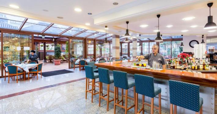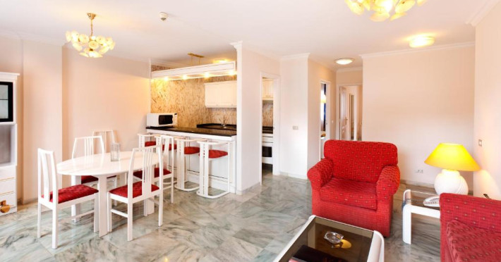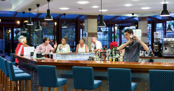 Cafe barul servește micul dejun, precum și diferite mese pe tot parcursul zilei. Apartamentele sunt la cațiva pași de centrul stațiunii, unde se pot găsi o gamă largă de baruri și restaurante.