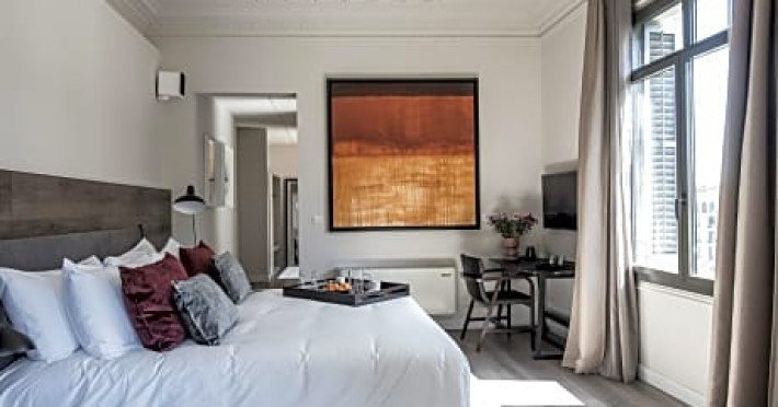 Located 5-minute walk from Paseo de Gracia and 1804 feet from Gaudi’s La Pedrera, Casagrand Luxury Suites offers apartments with free access to a rooftop terrace with a pool and a sauna. All soundproofed apartments includes, a pillow menu and turndown service. They all have a flat-screen satellite TV in all bedrooms and in the living-dining room; and a bathroom including a bathrobe and free Molton Brown toiletries. Some apartments have a private terrace. There is free WiFi available throughout. Guests have access to an on-site 24-hour gym and the staff at the reception will provide services and suggestions about surroundings. A selection of restaurants, cafes and bars can be found in Rambla de Catalunya Boulevard, 656 feet away. You can reach the Sagrada Familia within 30-minute walk, while the closest metro station is Diagonal Metro Station, 1148 feet away.Located 5-minute walk from Paseo de Gracia and 1804 feet from Gaudi’s La Pedrera, Casagrand Luxury Suites offers apartments with free access to a rooftop terrace with a pool and a sauna. All soundproofed apartments includes, a pillow menu and turndown service. They all have a flat-screen satellite TV in all bedrooms and in the living-dining room; and a bathroom including a bathrobe and free Molton Brown toiletries. Some apartments have a private terrace. There is free WiFi available throughout. Guests have access to an on-site 24-hour gym and the staff at the reception will provide services and suggestions about surroundings. A selection of restaurants, cafes and bars can be found in Rambla de Catalunya Boulevard, 656 feet away. You can reach the Sagrada Familia within 30-minute walk, while the closest metro station is Diagonal Metro Station, 1148 feet away.