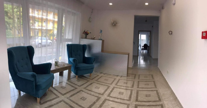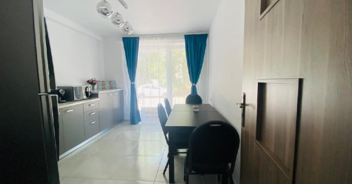 Unitatea dispune de zona de relaxare ,salon de servit masa dar si de o bucatarie dotata cu frigider , plita si cuptor cu microunde.