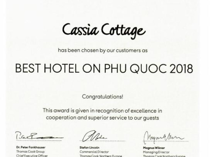 Cassia Cottage Resort and Spa se află la 10 minute de mers cu mașina de aeroportul Phu Quoc, la 50 de minute de zbor intern de orașul Ho Chi Minh și la 2 ore și 10 minute de zbor intern de Hanoi. Se află la 15 minute de mers pe jos de piața de noapte din orașul Duong Dong.