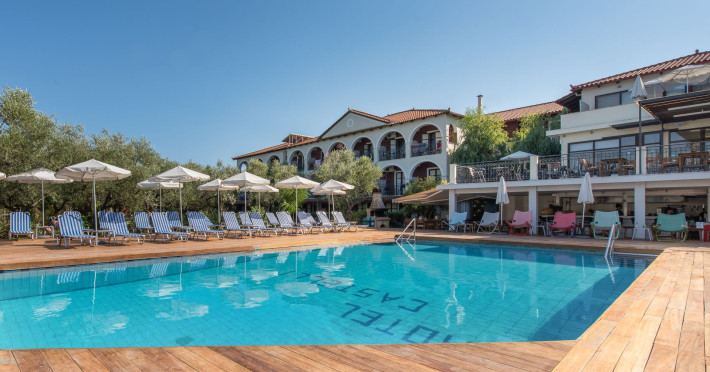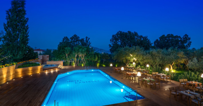 Castelli Hotel in Zakynthos, Greece, is an Adults Only boutique Hotel with unique approach to hospitality. Family-run, with beautiful relaxing green surroundings and modern amenities, Castelli combines a unique home-from-home atmosphere with 4-star service! Honored with significant international recognitions, Castelli is proud to be the âSustainability Overall Winnerâ of the 2018 TUI Northern Region Awards! Castelli is a pioneer eco-friendly hotel, that strives to promote sustainability.nbsp; Bridging the boutique holiday feel with our sustainable practices, we try to embrace ecofriendly practices in all our operations, involving our guests and staff members, with sincerity and respect for the local community and the environment.nbsp; Our guests are invited to enjoy the nature: we enhance our guestsâ experience with varied activities that give our guests the luxury of interacting with the nature!! What makes Castelli a unique experience: - âΤhat pampering feelingâ inviting you to always plan a holiday with us. - The privileged carefully designed Swim Up rooms: our Best-selling room type! - We take our guestsâ food experience, sleep experience, unique âsense of placeâ experience very seriously! - nbsp;Pioneer greening practices bond smoothly with modern amenities and professional boutique service - Our colourful activities: tours at the hotelâs farm and botanical garden, olive harvest picking activities within the hotelâs grounds, homemade treats, vineyard harvest, piano and live music nights, yoga, pilates and stretching classes at the olive grove, aqua fun, scuba* diving, hiking* amp; biking* tours are only few of the features that colour uniquely our valued guestsâ holiday. Our Spa Gazebo* in the olive grove promises relaxation inthe nature. - We emphasize on Greek food. Our A La Carte restaurant âEucalyptosâ concept is unique for our island, offering a genuine farm to table dining experience, dedicated to Zakynthosâ islandâs local dishes and emblematic products. We combine âoldâ recipes with local wines and contemporary ingredients and herbs. In 2018 we won the European âBest Hotel-Restaurant Awardâ by CEUCO, and the National Award of âQuality and Tasteâ for âEucalyptosâ Local Creative Cuisine, making Zakynthos âheardâ for its culinary experience. Exquisite location: The tranquil resort of Agios Sostis is near the nesting area of the endangered Caretta-Caretta sea-turtles, and close to the cosmopolitan Laganas, and the 9km blonde sandy beach, one of the longest of the Mediterranean: close, yet away from it all! Pioneer in greening: our building was constructed in an angle shape to preserve Zakynthosâ oldest eucalyptus tree, which existed in our grounds for more than two centuries before the hotel was built. This decision was made in 1989, expressing the consistent âeco-friendlyâ character that was born together with our establishment!! Our guestsâ evaluation speaks out: âEnvironmental Practicesâ rated with 9,8/10 in 2018, and in 2019 our âOverall holiday experienceâ with an average of 9,1/10! Castelli is an ideal holiday destination for couples and adults looking for a relaxing retreat. .................................... We have proudly received important recognitions like: - TUI Northern Region Awards 2018: Sustainability Award: Overall Winner! - Honoured with the âEco-Hotelâ Bronze Award by the Scandinavian Greek Travel Awards 2018 - Gold Travelife Award (2010- 2020) - The Green key (1st hotel in Zakynthos to have been awarded with the Green Key! (2010-2020) - Environmental Management System as per EN ISO 14001:2015 - Bike Friendly Accreditation 2018-2020 - Platinum Hikersâ Friendly Accreditation 2018-2020 - TUI Environmental Champion 2012 amp; 2013 - Green Planet Award by KUONI Swiss 2006/2007 - Gold Award 2018 amp; 2019: âEucalyptosâ Restaurant received the Premium Gold Award by estiatoria.gr for its exceptional local creative cuisine. (First in Zakynthos) -âBest European Hotel-Restaurantâ 2018 By CEUCO - 11 Guestsâ Golden Awards by TUI UK - Silver Customersâ Choice Award by Apollo (2013) - Tripadvisorâ s Certificate of Excellence for 2011 - 2020 - Hall of FAME 2017, 2018,2019. - Quality Selection 2012, 2014, 2017, 2018, 2020 by Holidaycheck.com .......................................................................Datorita dinamicitatii domeniului disponibilitatea ofertelor se modifica de la un moment la altul. De aceea ofertele sunt valabile in limita locurilor disponibile. Agentia nu este responsabila pentru eventualele neconcordante care pot aparea intre informatiile privind tarifele si alte detalii din site si informatiile primite in agentie. In aceste cazuri vor avea prioritate, intotdeauna, informatiile primite in agentie.