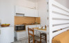 La Castello Bianco oaspeții au la dispoziție un restaurant care servește mâncare à la carte. Bucătăria mediteraneană de la Castello Bianco propune preparate delicioase care satisfac gusturi diverse. Masa poate fi servită atât în interior, cît si în aer liber, pe terasă, în funcție de vreme. Oaspeţii pot avea diverse băuturi răcoritoare sau alcoolice la bar. Oaspeţii îşi pot pregăti micul dejun şi alte mese şi le pot savura chiar pe balcon.