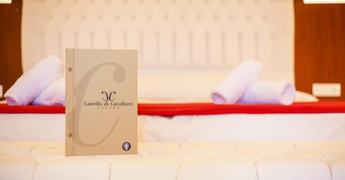 Sunt disponibile 18 camere. În camere există baie cu cadă sau duș ce are în dotare foehn și articole de toaletă gratuite. Unele camere au balcon cu vedere la mare sau la piscină. Fiecare cameră dispune de mașină pentru preparare cafea sau ceai și fierbător Camerele confortabile de la Castello Di Cavalieri Suites au pardoseală de gresie/ marmură, aer condiționat, Tv cu canale prin satelit și seif. Oaspeții au acces gratuit la serviciul Wi-fi în camere. Curățenia in cameră se face zilnic. Fiecare unitate de cazare are frigider. Proprietatea oferă camere pentru nefumători.