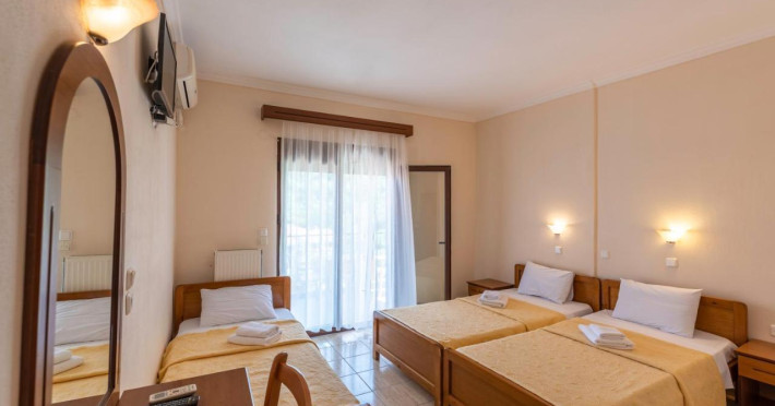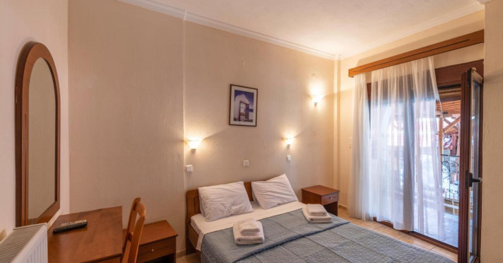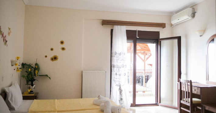 In a lush garden 130 metres from the beach of Skala Potamias, the stone-built Pontios offers a snack bar. It features air-conditioned accommodation with a furnished balcony overlooking the Thracian Sea or the mountains of Thassos.A fridge, a TV and individually controlled air conditioning are included in all units at the Pontios. Hairdryer and safety box are also provided. Some include a kitchenette with cooking hobs for guests to prepare breakfast and light meals.Drinks and coffee are served at the well-kept flowery garden bar or indoors by the fireplace. Taverns and shops are 100 metres away.A children’s playground and seating areas are provided in the flowered garden. Free WiFi access is possible in public areas.The famous Chrissi Ammoudia Beach is 2 km away. A bus stops right outside the property. Free private parking is provided on site.Check-in from 14:00 to 23:30Check-out from 07:00 to 12:00Datorita dinamicitatii domeniului disponibilitatea ofertelor se modifica de la un moment la altul. De aceea ofertele sunt valabile in limita locurilor disponibile. Agentia nu este responsabila pentru eventualele neconcordante care pot aparea intre informatiile privind tarifele si alte detalii din site si informatiile primite in agentie. In aceste cazuri vor avea prioritate, intotdeauna, informatiile primite in agentie.