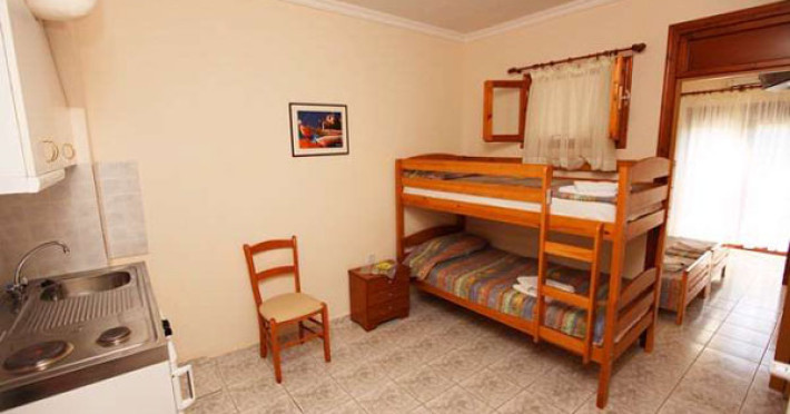 Pontos hotel is situated in Skala Potamia (Golden Beach). It is built in a green area with a view towards the sea and the mountain. The hotel is at a distance of 130m. from the sea and 13 km from Limenas town, the capital of Thassos. Hotel Pontios has a wonderful living room with a bar and a fireplace, where stone is combined with wood. It is surrounded by a flower garden with a playground and relaxing areas for you and your family. The traditional yard with trees, kiosks and flowers, hosts several pets and animals that will bring you closer to nature. There are double-bed rooms and apartments with two separate spaces, havingair-condition, TV, fridge and safe. Each has its own balcony with panoramic view towards the sea, so that you can enjoy a peaceful view of the seas blue and the Aegean sunsets. Bunk bed apartments, Standard apartmentsand Sea view suitesare double spaced.Bunk bedapartments and Sea view suites areequipped witha kitchen, whileStandard apartmentsand have no kitchen and can accommodate 4 persons. In the complexs area you will findthe bar, where refreshing drinks are being served. Remark: the hotel has several corridors and staircases and for this reason it is not suited for old people.Datorita dinamicitatii domeniului disponibilitatea ofertelor se modifica de la un moment la altul. De aceea ofertele sunt valabile in limita locurilor disponibile. Agentia nu este responsabila pentru eventualele neconcordante care pot aparea intre informatiile privind tarifele si alte detalii din site si informatiile primite in agentie. In aceste cazuri vor avea prioritate, intotdeauna, informatiile primite in agentie.