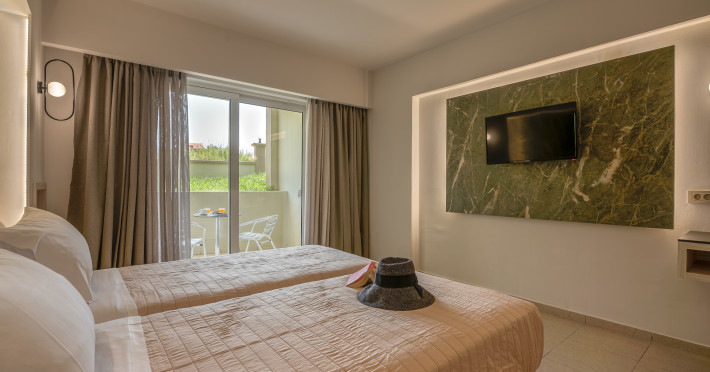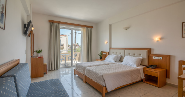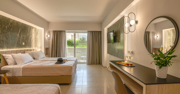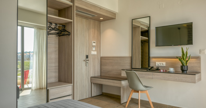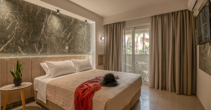 The hotel is located just a short walk from Castro Beach, providing easy access to the sandy shores and clear waters. The hotel offers a range of room types, including studios and apartments. Rooms are typically equipped with modern amenities like air conditioning, flat-screen TVs, and kitchenettes or full kitchens, making them suitable for both short and extended stays.Many rooms feature balconies or terraces with views of the garden, pool, or, in some cases, the sea. Besides enjoying Castro Beach, guests can explore the local area, which offers opportunities for shopping, dining, and sightseeing. Chania’s historic center is not far away and is worth a visit for its Venetian harbor, old town.