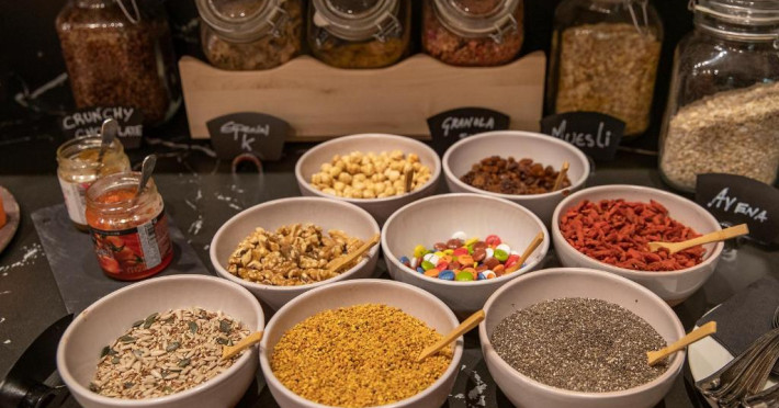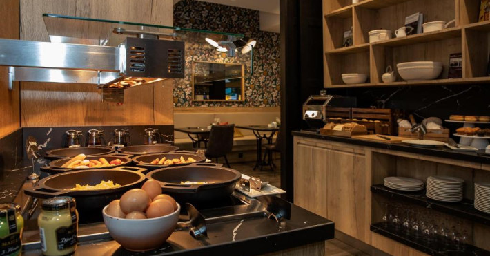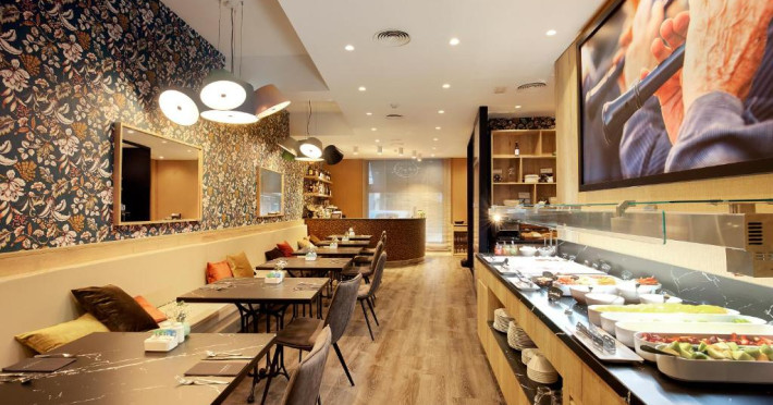 Oaspeții se pot bucura de un mic dejun tip bufet zilnic in cafeneaua de la Catalonia. Există o gamă largă de cafenele, baruri și restaurante la cațiva pași de hotel.