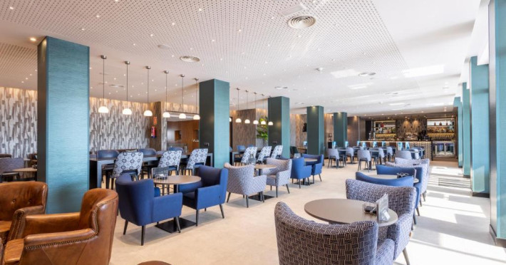 Hotelul Catalonia Majórica are o terasă mare la soare si un bar amplasat langă piscină. Restaurantul oferă vedere la Portul Palma și servește preparate culinare internaționale.