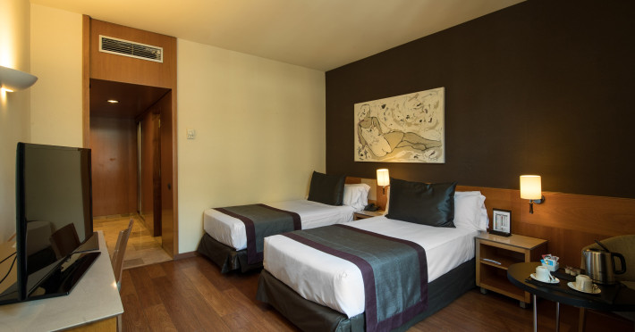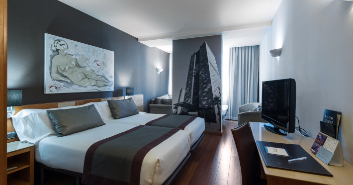 The hotel Catalonia Plaza Catalunya is located very close to various restaurants and bars. The city centre is also just a few steps away. Shops are right on your doorstep. The hotel has a 24h reception, Wi-Fi, an internet corner, 3 lifts, a jacuzzi as well as parking spaces. In the outdoor area of the property you will find a heated pool. Furthermore, you can relax outdoors on the sun terrace. There is also a laundry service. The energy supply is 220 Volts. For conventions and other business meetings, the hotel offers a conference area with a total of 250 seats, a video projector, fax as well as a catering service. American Express, Diners Club and Euro/Master Card are accepted as means of payment. Due to its barrier-free facilities , such as barrier-free entrances, the hotel is also suitable for wheelchair users. Catering Breakfast is offered from the buffet. Your physical well-being is catered for by a restaurant with terrace and the pool bar. Distances- Airport: approx. 15 km