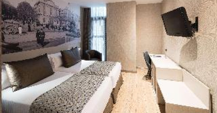 Located in Barcelona (Downtown Barcelona), Catalonia Born is within a 15-minute walk of La Rambla and Plaça de Catalunya. This 4-star hotel is 0.5 mi (0.8 km) from Barcelona Cathedral and 1.7 mi (2.7 km) from Sagrada Familia. Be sure to enjoy recreational amenities including an outdoor pool and a fitness center. Additional amenities at this hotel include complimentary wireless Internet access, concierge services, and a vending machine. Make yourself at home in one of the 90 air-conditioned rooms featuring minibars and LCD televisions. Complimentary wireless Internet access keeps you connected, and satellite programming is available for your entertainment. Bathrooms have shower/tub combinations and hair dryers. Conveniences include phones, as well as safes and desks. Enjoy Mediterranean cuisine at Snack-Bar, a bistro which features a bar/lounge, or stay in and take advantage of the room service (during limited hours). Buffet breakfasts are available daily from 7:00 AM to 11:00 AM for a fee. Featured amenities include a computer station, dry cleaning/laundry services, and a 24-hour front desk. Distances are displayed to the nearest 0.1 mile and kilometer.Arc de Triomf - 0.2 km/0.2 mi- Parc de la Ciutadella - 0.4 km/0.2 mi- Palau de la Música Catalana - 0.5 km/0.3 mi- Picasso Museum - 0.6 km/0.4 mi- El Born Centre Cultural - 0.7 km/0.4 mi- Barcelona Cathedral - 0.8 km/0.5 mi- Basilica de Santa Maria del Mar - 0.9 km/0.5 mi- Portal de l'Angel - 0.9 km/0.5 mi- El Corte Ingles - 1 km/0.6 mi- Barcelona City Council - 1 km/0.6 mi- Tivoli Theatre - 1.1 km/0.7 mi- Plaça de Catalunya - 1.1 km/0.7 mi- La Rambla - 1.1 km/0.7 mi- Plaza de Toros Monumental - 1.2 km/0.8 mi- Plaça Reial - 1.3 km/0.8 mi. The preferred airport for Catalonia Born is Barcelona El Prat Airport (BCN) - 19.1 km/11.9 mi.Located in Barcelona (Downtown Barcelona), Catalonia Born is within a 15-minute walk of La Rambla and Plaça de Catalunya. This 4-star hotel is 0.5 mi (0.8 km) from Barcelona Cathedral and 1.7 mi (2.7 km) from Sagrada Familia. Be sure to enjoy recreational amenities including an outdoor pool and a fitness center. Additional amenities at this hotel include complimentary wireless Internet access, concierge services, and a vending machine. Make yourself at home in one of the 90 air-conditioned rooms featuring minibars and LCD televisions. Complimentary wireless Internet access keeps you connected, and satellite programming is available for your entertainment. Bathrooms have shower/tub combinations and hair dryers. Conveniences include phones, as well as safes and desks. Enjoy Mediterranean cuisine at Snack-Bar, a bistro which features a bar/lounge, or stay in and take advantage of the room service (during limited hours). Buffet breakfasts are available daily from 7:00 AM to 11:00 AM for a fee. Featured amenities include a computer station, dry cleaning/laundry services, and a 24-hour front desk. Distances are displayed to the nearest 0.1 mile and kilometer.Arc de Triomf - 0.2 km/0.2 mi- Parc de la Ciutadella - 0.4 km/0.2 mi- Palau de la Música Catalana - 0.5 km/0.3 mi- Picasso Museum - 0.6 km/0.4 mi- El Born Centre Cultural - 0.7 km/0.4 mi- Barcelona Cathedral - 0.8 km/0.5 mi- Basilica de Santa Maria del Mar - 0.9 km/0.5 mi- Portal de l'Angel - 0.9 km/0.5 mi- El Corte Ingles - 1 km/0.6 mi- Barcelona City Council - 1 km/0.6 mi- Tivoli Theatre - 1.1 km/0.7 mi- Plaça de Catalunya - 1.1 km/0.7 mi- La Rambla - 1.1 km/0.7 mi- Plaza de Toros Monumental - 1.2 km/0.8 mi- Plaça Reial - 1.3 km/0.8 mi. The preferred airport for Catalonia Born is Barcelona El Prat Airport (BCN) - 19.1 km/11.9 mi.