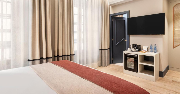 Primely located in the center of Málaga, next to Calle Larios and just a few minutes walk from the Cathedral and the citys most visited buildings, the hotel is housed in a listed building of historical value, maintaining its fully renovated original façade and various interior features. . Total rooms: 74 Basic amenities: Rooms feature air conditioning/heating, a desk, a minibar, a safe, a telephone, a Smart TV with Chromecast and international channels, complimentary high-speed Wi-Fi, coffee and tea facilities, room service, and a bathroom with a shower or bathtub and a hairdryer. . Gastrobar: An informal space with a varied menu, from snacks to Mediterranean-inspired dishes. . OTHER FACILITIES Gym area with state-of-the-art Life Fitness equipment. Other: Public parking is a 4-minute walk away. Special hotel rates. Spaces are subject to availability. Free high-speed Wi-Fi. Laundry service. . Check In Time: 3 p.m. Check Out: 12 noon . Breakfast Buffet: Full and varied breakfast buffet with show cooking, natural fruit juices, cold cuts and cheeses, freshly baked pastries, different varieties of bread, cereals, salmon, and much more.Datorita dinamicitatii domeniului disponibilitatea ofertelor se modifica de la un moment la altul. De aceea ofertele sunt valabile in limita locurilor disponibile. Agentia nu este responsabila pentru eventualele neconcordante care pot aparea intre informatiile privind tarifele si alte detalii din site si informatiile primite in agentie. In aceste cazuri vor avea prioritate, intotdeauna, informatiile primite in agentie.