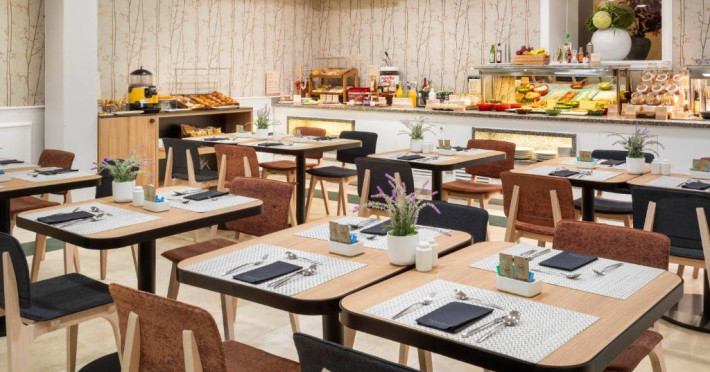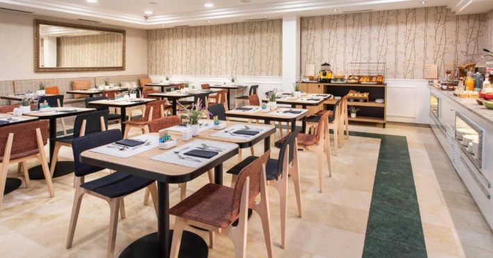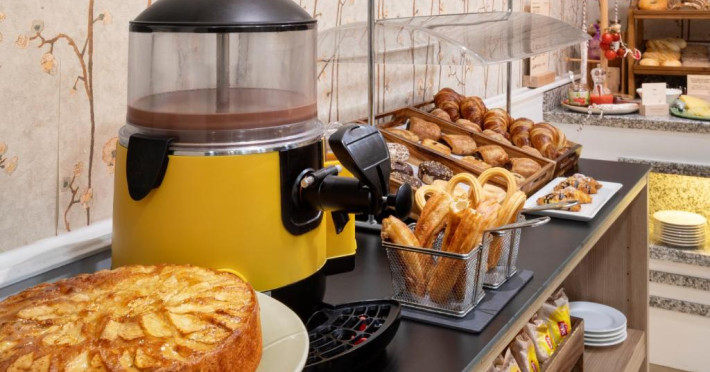 Restaurantul de la Puerta del Sol servește un mic dejun tip bufet in fiecare dimineață și este disponibil pană la ora 12:00 in weekend. Există, de asemenea, un bar cu o terasă acoperită, El Patio, de unde puteți lua o gustare sau o băutură. Există, de asemenea, un patio cu cupole de cristal. Toate camerele de hotel au televizoare inteligente, care sunt echipate cu aplicația Chromecast.