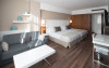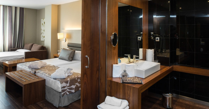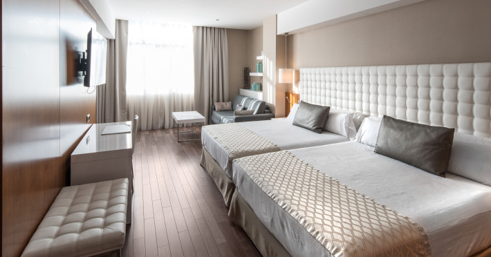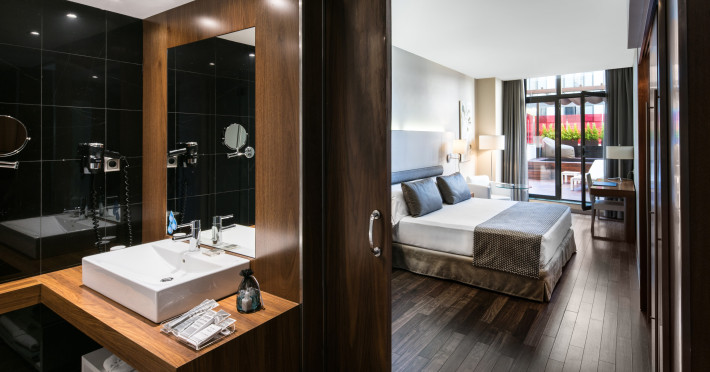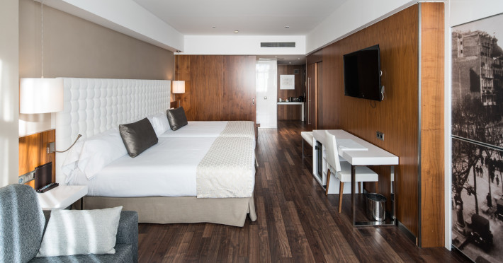 The hotel HOTEL CATALONIA RAMBLAS is located very close to various restaurants and bars. The city centre is also just a few steps away. Shops are right on your doorstep. The hotel has a 24h reception, a lobby bar, Wi-Fi, an internet corner, 4 lifts, a jacuzzi as well as parking spaces. In the outdoor area you will find a pool that is open seasonally, where sun loungers are available for free. Furthermore, outside you can find a sun terrace. There is also a laundry service. The energy supply is 220 Volts. For conventions and other business meetings, the hotel offers a conference area with fax as well as a catering service. American Express, Diners Club and Euro/Master Card are accepted as means of payment. Catering Breakfast is offered from the buffet. Lunch and dinner are served as a set meal or à la carte. For the meals, there are a restaurant with terrace (Mediterranean dishes) and the pool bar. Distances- Airport: approx. 15 km