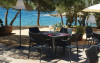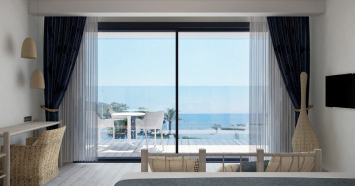 The rooms are elegant, spacious and bright. All have a large private terrace with sea views and outdoor furniture. They also have a Smart TV, sofa, Nesspreso coffee machine, kettle with coffee and tea facilities, air conditioning, ceiling fan, minibar, safe with plug, battery charger for all types of mobile devices, bathrobe and slippers. The bathroom is equipped with a shower, hairdryer and VIP toiletries. Some rooms also have a living room, awning on the terrace and/or direct access to the pool.