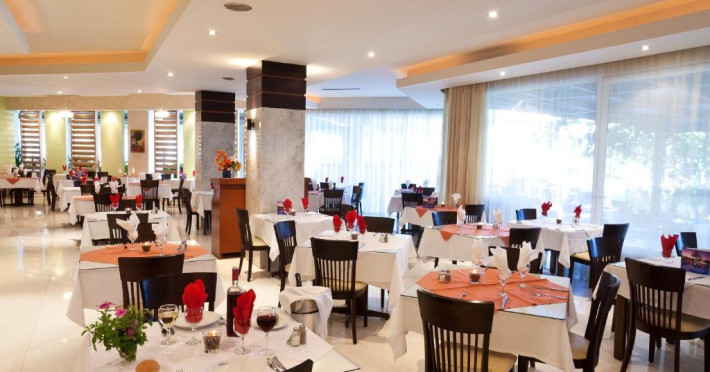 Breakfast and dinner are served in buffet style at the on-site restaurant. Cocktails are served at the main bar, while snack favorites are available at the pool-side snack bar.