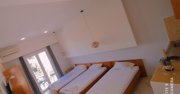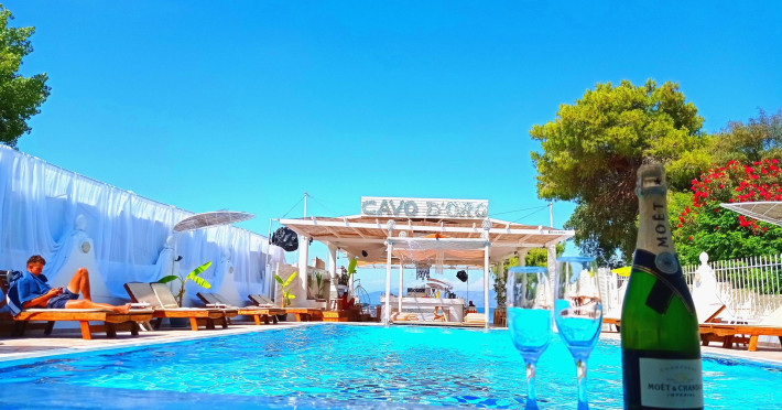 The Cavo D'oro is a quiet family complex is located right on the long sandy beach af kavos, offering genuine Greek hospitality for backpackers as well as for couples, families and small groups. Our property disposes of outdoor swimming pool, beach bar with sunbeds and umbrellas.The property offers beach area with sunbeds and umbrellas , where guests can chill by day. All rooms feature air- conditioning , private bathroom, kitchenette and a furnished sunny balcony. Breakfast , snaks, meals served by the pool and beach. Free WI-FI acess is possible in public areas.Datorita dinamicitatii domeniului disponibilitatea ofertelor se modifica de la un moment la altul. De aceea ofertele sunt valabile in limita locurilor disponibile. Agentia nu este responsabila pentru eventualele neconcordante care pot aparea intre informatiile privind tarifele si alte detalii din site si informatiile primite in agentie. In aceste cazuri vor avea prioritate, intotdeauna, informatiile primite in agentie.