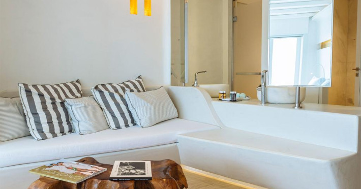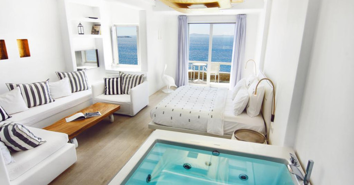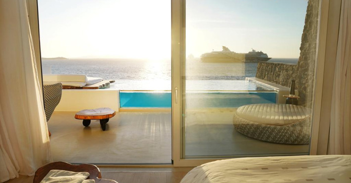 Cavo Tagoo Mykonos este o proprietate de 5 stele care se află în Mykonos (Mykonos), la o distanță de 400 m de plaja Tourlos și oferă piscină în aer liber, cu șezlonguri și umbrele de soare, precum și un centru spa care asigură servicii pentru un sejur extrem de relaxant. Facilitățile de la Cavo Tagoo Mykonos includ și sală de fitness. Proprietatea are, de asemenea, servicii de recepție cu program non - stop, concierge și închirieri auto. Se oferă acces gratuit la internet Wi-fi în spațiile publice. Parcarea este disponibilă la proprietate gratuit.