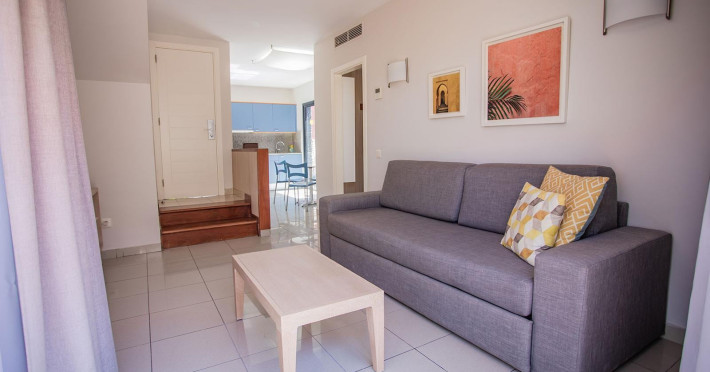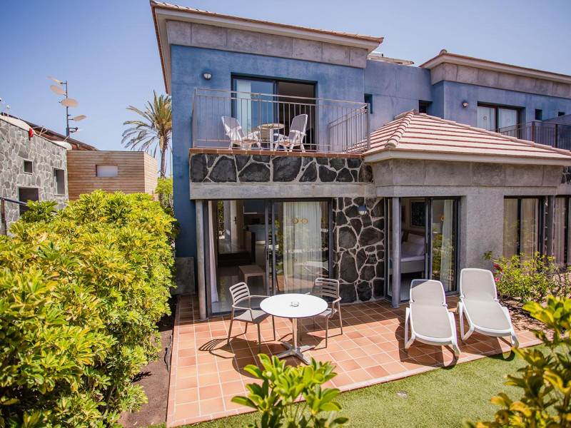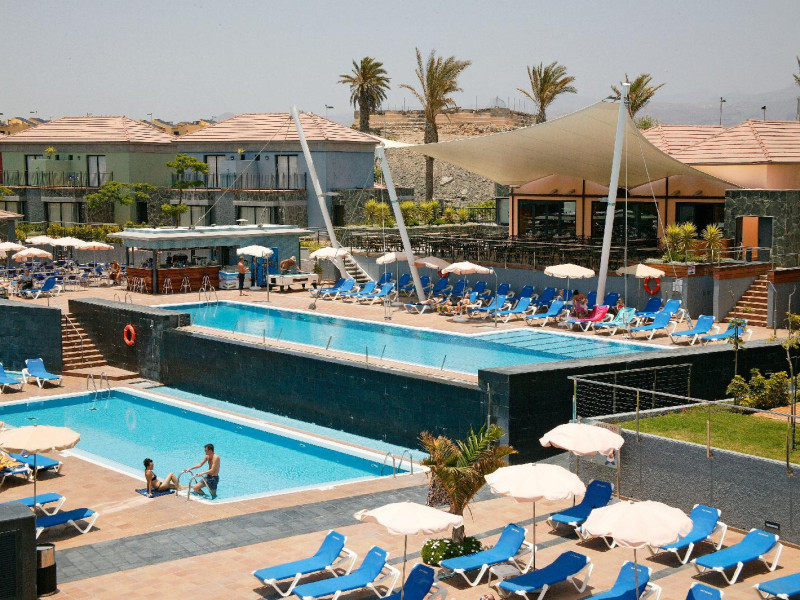 The welcoming complex is peacefully located in the holiday resort of Meloneras just 500 m from the fabulous natural stone beach of Playa Meloneras. Shopping and entertainment venues are to be found just 1 km away and links to the public transport network are to be found in the near vicinity. The complex offers 24 h reception, supermarket, games room, playground, miniclub, entertainment, jacuzzi and gym among other facilities. The bungalows consisting of one master-bedroom, bathroom, living-dining room, air condition, kitchen fully equipped, a small patio, SAT TV, hairdryer and safety deposit box on the ground floor. On the first floor, there is a bedroom, bathroom, balcony, air condition, satellite TV, minibar, and safety deposit box. The complex offers some sports and leisure options such us minigolf 9 holes, paddle, fitness room, massage and beauty parlour, games arcade, billiard and table tennis. Some of them at an extra cost.The establishment offers an outdoor pool and a children's pool. A terrace, sun loungers and parasols are available. A hot tub provides an opportunity for relaxation. There is also a poolside snack bar. Those wishing to enjoy sports whilst on holiday can have fun on-site with crazy golf and golf. For a fee, cycling/mountain biking is also available. A gym, table tennis and pool/billiards are some of the sports and leisure options available at the establishment. Wellness options offered include a spa. For additional fees, guests can enjoy numerous other facilities and services, such as a sauna, a steam bath and massage treatments. Entertainment options and leisure facilities include live music and a kids' club.The welcoming complex is peacefully located in the holiday resort of Meloneras just 500 m from the fabulous natural stone beach of Playa Meloneras. Shopping and entertainment venues are to be found just 1 km away and links to the public transport network are to be found in the near vicinity. The complex offers 24 h reception, supermarket, games room, playground, miniclub, entertainment, jacuzzi and gym among other facilities. The bungalows consisting of one master-bedroom, bathroom, living-dining room, air condition, kitchen fully equipped, a small patio, SAT TV, hairdryer and safety deposit box on the ground floor. On the first floor, there is a bedroom, bathroom, balcony, air condition, satellite TV, minibar, and safety deposit box. The complex offers some sports and leisure options such us minigolf 9 holes, paddle, fitness room, massage and beauty parlour, games arcade, billiard and table tennis. Some of them at an extra cost.The establishment offers an outdoor pool and a children's pool. A terrace, sun loungers and parasols are available. A hot tub provides an opportunity for relaxation. There is also a poolside snack bar. Those wishing to enjoy sports whilst on holiday can have fun on-site with crazy golf and golf. For a fee, cycling/mountain biking is also available. A gym, table tennis and pool/billiards are some of the sports and leisure options available at the establishment. Wellness options offered include a spa. For additional fees, guests can enjoy numerous other facilities and services, such as a sauna, a steam bath and massage treatments. Entertainment options and leisure facilities include live music and a kids' club.