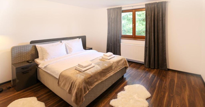 Cedrus Bran Boutique - clasificat 3 stele, amplasat in Comuna Bran, sat Predelut, la doar 1 km de Castelul Bran, vila pune la dispozitie 6 camere cu 3 bai comune, zona de living, bucatarie complet echipata, terasa exterioara acoperita cu zona de gratar, ciubar cu functie de jacuzzi.Oaspetii se pot bucura de relaxare pe sezlongurile exterioare in timpul verii.