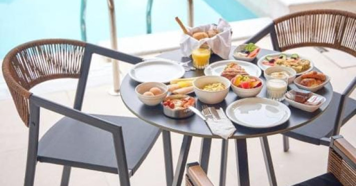 At Celineâs Rose hospitality, comfort, pleasure, calmness and relaxation, in terms of discreet luxury, are our top priorities. Combining the natural wealth of Thassos (wood and stone) and inspired by earth colors, our rooms are dominated by harmony and high aesthetic design. With friends or family, in any case, the warm hospitality and the beautiful landscape, viewing at the sea or the mountain, the garden or the pool, will make your holidays idyllic. Simple lines and atmospheric design details make each apartment look like a dream. The warmth of wood and the imposing Thassian stone in combination with elegant earth tones give a unique character to our luxurious apartments. Breakfast hours: 8:00 am â 10:30 am Breakfast is prepared and served in a buffet in the breakfast area by the pool. Celineâs Rose Pool Bar is open from 11:00 am to 14:30 pm, and from 17:30 pm to 21:00 pm, and it is located by the pool.Datorita dinamicitatii domeniului disponibilitatea ofertelor se modifica de la un moment la altul. De aceea ofertele sunt valabile in limita locurilor disponibile. Agentia nu este responsabila pentru eventualele neconcordante care pot aparea intre informatiile privind tarifele si alte detalii din site si informatiile primite in agentie. In aceste cazuri vor avea prioritate, intotdeauna, informatiile primite in agentie.