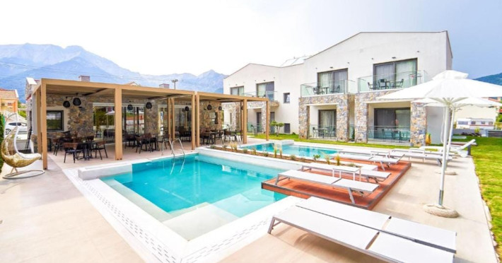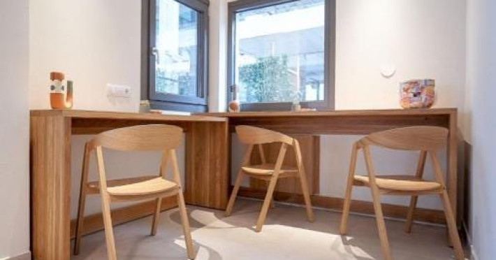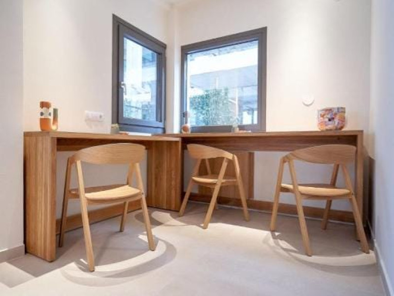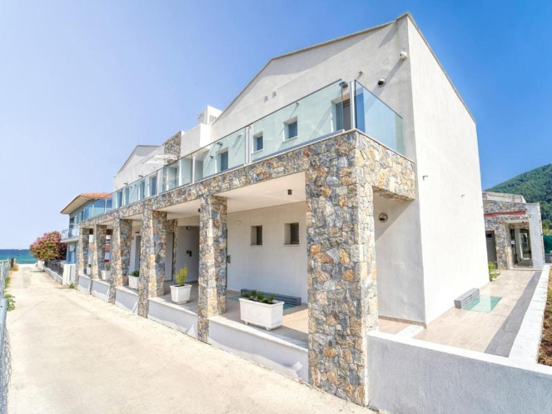 Simple lines and atmospheric design details make each apartment look like a dream. The warmth of wood and the imposing Thassian stone in combination with elegant earth tones give a unique character to our luxurious apartments.