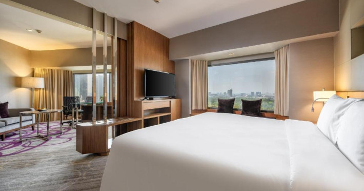 Fiecare cameră are vedere la verdeața luxuriantă sau la orizontul orașului Bangkok. Toate camerele oferă aer, cadă și duș, TV prin satelit și filme cu vizionare cu plată. Există minibar și aparat de ceai/cafea.