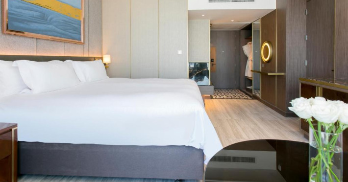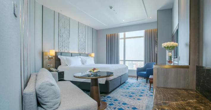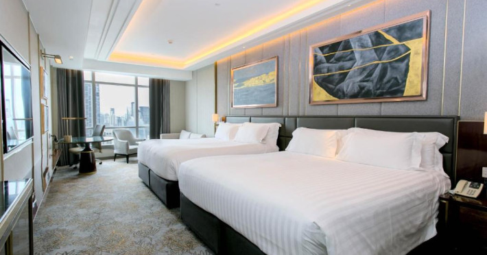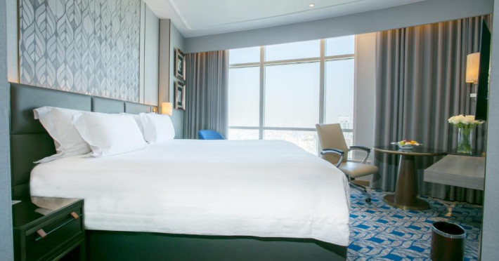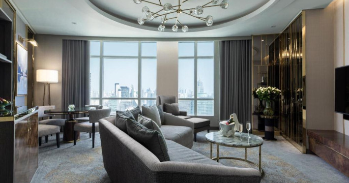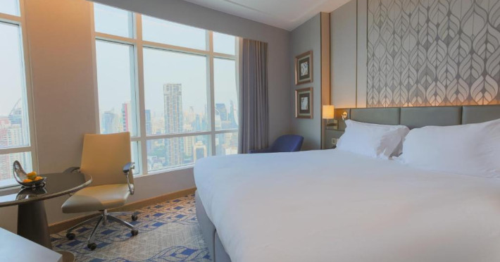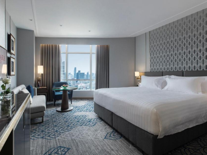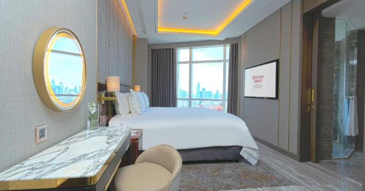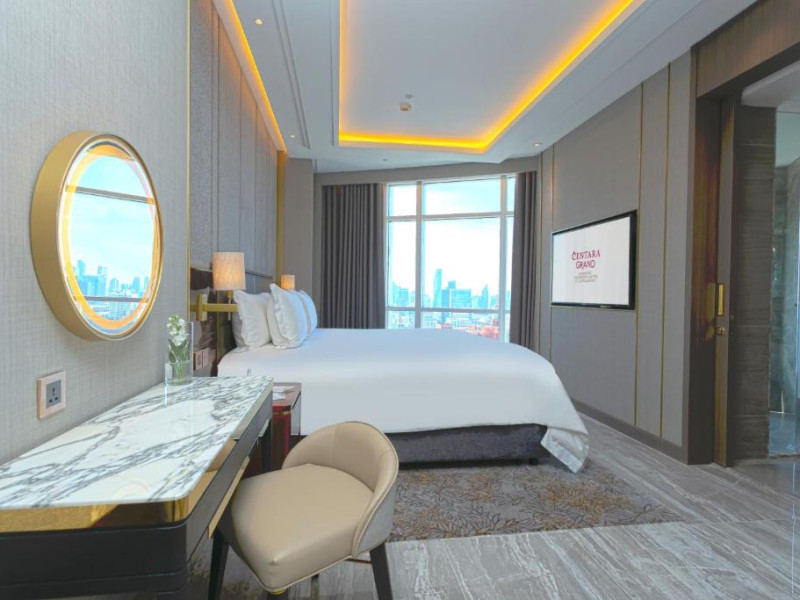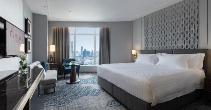 Căptușite cu ferestre transparente din podea pană in tavan, camerele de la Centara Grand sunt decorate elegant, in culori liniștitoare. Fiecare este dotată cu TV cu ecran plat și seif personal. Băile spațioase sunt dotate cu o cadă și halate de baie.