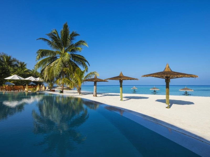Facilitati camere: Hotelul dispune de 140 de vile luxoase, ce se imbina armonios cu vegetatia tropicala si plaja cu nisip alb pudrat. Sunt decorate intr-un stil minimalist si sunt dotate cu TV (ecran plat), DVD player, acces gratuit Wi-Fi, minibar, uscator de par, aer conditionat, ventilator, telefon, seif, halat si papuci de baie, produse pentru ingrijirea personala, facilitati pentru prepararea ceaiului sau a cafelei, baie privata cu dus sau cada.