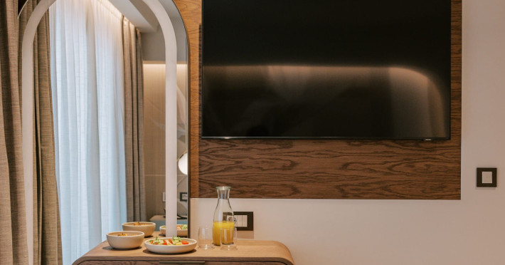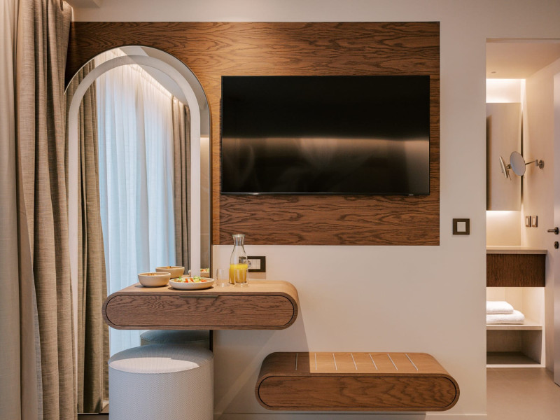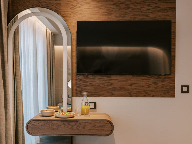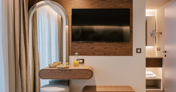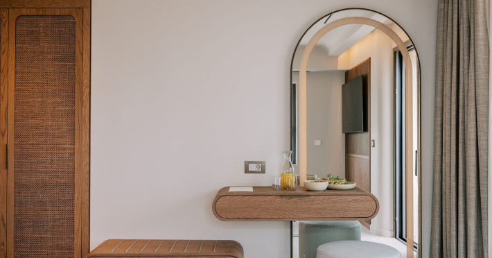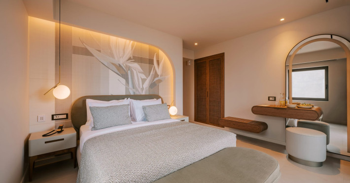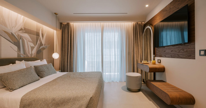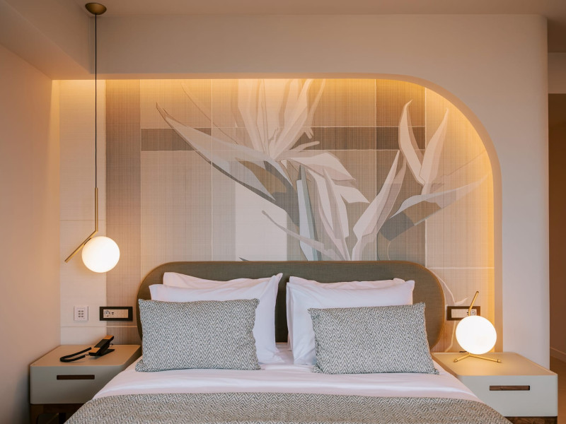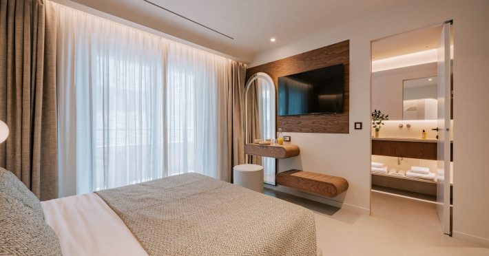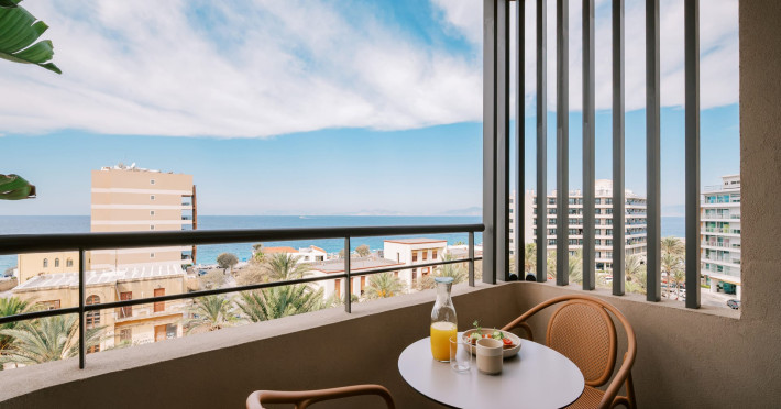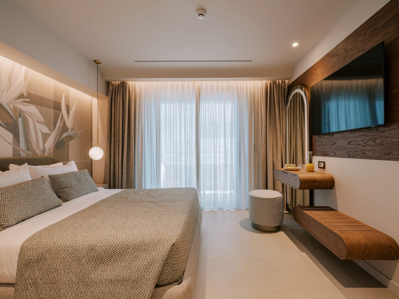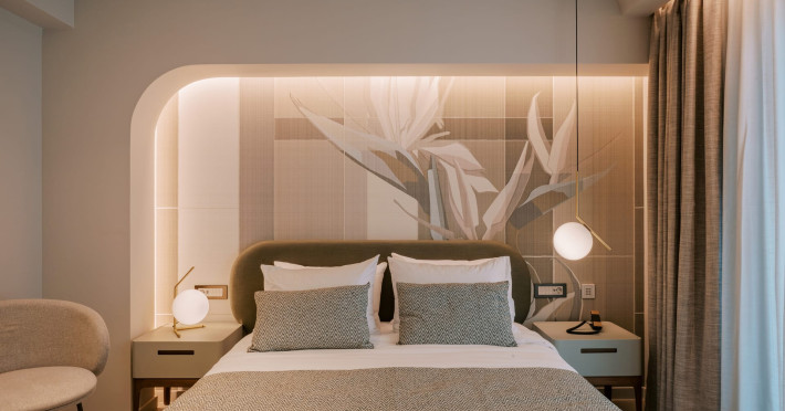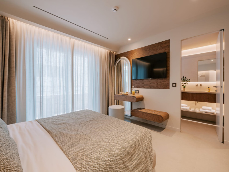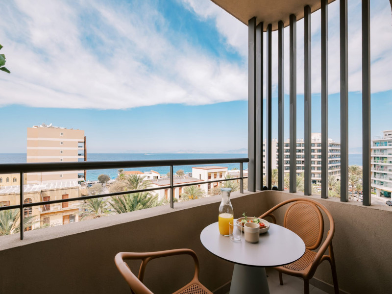 A Hundred Palms, A Hundred Stories. One unforgettable stay.A thoughtfully designed retreat in Rhodes Town, created for couples and close companions seeking a relaxing and connected stay.Set in the vibrant heart of Rhodes Town, Cento Palme is a new 5-star boutique hotel by BluCollection. Blending contemporary luxury with timeless aesthetics, each space is a curatedretreat, defined by natural materials, soft tones, and bespoke furniture.The hotel takes its name and spirit from nearby Charitou Square, once known as Piazza delleCento Palme — the “Square of 100 Palm Trees.” Built in 1933 as part of a visionary urban planduring the Italian Era, the square was framed with exotic palms and designed with symmetry,grandeur, and a sense of elegance. It was created as a central, aristocratic space to attractsummer holidaymakers to the northern tip of the island. Today, Cento Palme carries this legacyforward, reinterpreting it for the discerning, modern traveler.LOCATIONPerfectly situated in the heart of Rhodes Town, there's no need for a car to discover the city'svibrant spirit. Next door to the Museum of Modern Greek Art and within walking distance ofthe city’s UNESCO-listed Old Town, shopping streets, buzzing cafes, local foodie spots, andcultural landmarks, the hotel offers access to both authentic city life and historical charm. Andwith the Aegean Sea only 50 meters away, the beach is never more than a breath away — idealfor a morning swim, sunset stroll, or spontaneous escape to the water.DISTANCE FROM:• Airport14 km• Commercial port 2.5 km• City center 1.0 km• Medieval Town 1.5 km• Lindos 50 km• Butterflies Valley 25 kmHOTEL FACILITIES AND SERVICES INCLUDE:• Buffet and a la carte breakfast• 24-hour Room Service• Laundry & dry cleaning service• Free WI-FI• Bell Boy Service• Luggage service & storage• Complimentary beach towels• Special request service (pre-arrival & during your stay)• Personal check-in• All-Day Dining & Lounge ExperienceAll rooms are designed for a maximum occupancy of 2 adults, featuring sumptuous king-size beds (please note: twin bed configuration is not available, baby cot is not available).A Hundred Palms, A Hundred Stories. One unforgettable stay.A thoughtfully designed retreat in Rhodes Town, created for couples and close companions seeking a relaxing and connected stay.Set in the vibrant heart of Rhodes Town, Cento Palme is a new 5-star boutique hotel by BluCollection. Blending contemporary luxury with timeless aesthetics, each space is a curatedretreat, defined by natural materials, soft tones, and bespoke furniture.The hotel takes its name and spirit from nearby Charitou Square, once known as Piazza delleCento Palme — the “Square of 100 Palm Trees.” Built in 1933 as part of a visionary urban planduring the Italian Era, the square was framed with exotic palms and designed with symmetry,grandeur, and a sense of elegance. It was created as a central, aristocratic space to attractsummer holidaymakers to the northern tip of the island. Today, Cento Palme carries this legacyforward, reinterpreting it for the discerning, modern traveler.LOCATIONPerfectly situated in the heart of Rhodes Town, there's no need for a car to discover the city'svibrant spirit. Next door to the Museum of Modern Greek Art and within walking distance ofthe city’s UNESCO-listed Old Town, shopping streets, buzzing cafes, local foodie spots, andcultural landmarks, the hotel offers access to both authentic city life and historical charm. Andwith the Aegean Sea only 50 meters away, the beach is never more than a breath away — idealfor a morning swim, sunset stroll, or spontaneous escape to the water.DISTANCE FROM:• Airport14 km• Commercial port 2.5 km• City center 1.0 km• Medieval Town 1.5 km• Lindos 50 km• Butterflies Valley 25 kmHOTEL FACILITIES AND SERVICES INCLUDE:• Buffet and a la carte breakfast• 24-hour Room Service• Laundry & dry cleaning service• Free WI-FI• Bell Boy Service• Luggage service & storage• Complimentary beach towels• Special request service (pre-arrival & during your stay)• Personal check-in• All-Day Dining & Lounge ExperienceAll rooms are designed for a maximum occupancy of 2 adults, featuring sumptuous king-size beds (please note: twin bed configuration is not available, baby cot is not available).