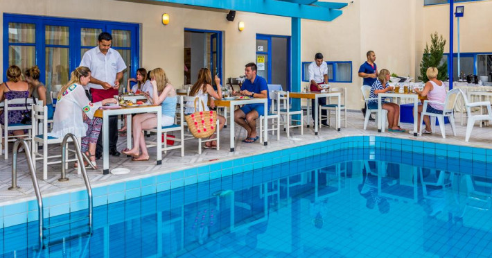 La Central Hersonissos oaspeții au la dispoziție un restaurant care servește mâncare în stil bufet. Preparate din bucătăria grecească așteaptă să fie degustate în fiecare zi. Masa poate fi servită atât în interior, cît si în aer liber, pe terasă, în funcție de vreme. Oaspeţii pot avea diverse băuturi răcoritoare sau alcoolice la bar.