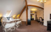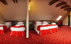 Camera dubla in stil mansarda, cu elementele masive vizibile ale structurii din lemn explodeaza intr-un amestec armonios de traditional si modern. Bijuterie unica in cadrul hotelului, cu o atmosfera calda si primitoare, camera este atent decorata cu mult bun-gust si cu o atentie deosebita la detalii. Elementele de lemn, detaliile de finisare precum si mobilierul modern se imbina intr-un mod armonios pentru a crea o atmosfera relaxanta si placuta iar pozitionarea la un nivel superior al hotelului vine cu un plus de liniste pentru odihna bine-meritata dup o zi incarcata.