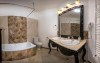 Balconul privat ofera o priveliste minunata spre curtea interioara, plina de plante si verdeata iar dimineata, dup un somn odihnitor aerul proaspat si racoros de afara, ofera ocazia perfecta pentru o cafea delicioasa sub razele soarelui. Baia generoasa si eleganta este dotata cu articole de toaleta de calitate iar prosoapele moi si pufoase completeaza sentimentul de lux si comfort.