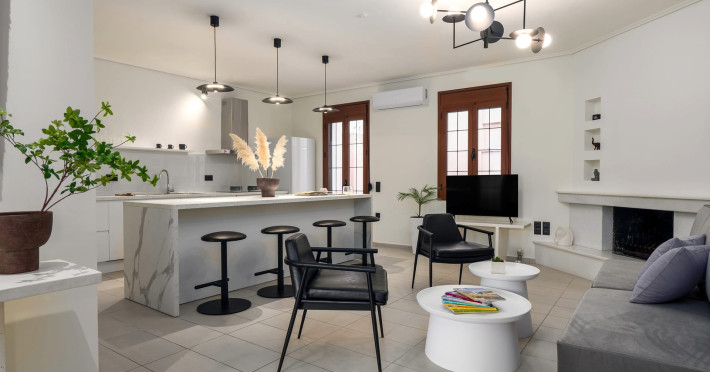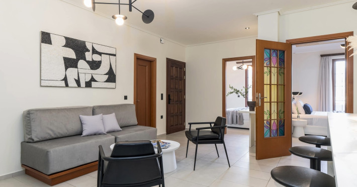 2-bedroom, 1-bathroom retreat. Spanning 75 sqm, features a private sea view terrace with dining table and sun loungers for serene moments, an open-plan fully equipped kitchen in the living room, and anatomical mattresses ensuring unparalleled comfort. Every room is equipped with individually controlled air conditioning and free WiFi. The apartment is equipped with a washing machine and steam iron which are shared with our other apartment and its own clothes rack. The apartment is located in the first floor of the building and its accessible by a spacious staircase. The terrace is in the second floor.Datorita dinamicitatii domeniului disponibilitatea ofertelor se modifica de la un moment la altul. De aceea ofertele sunt valabile in limita locurilor disponibile. Agentia nu este responsabila pentru eventualele neconcordante care pot aparea intre informatiile privind tarifele si alte detalii din site si informatiile primite in agentie. In aceste cazuri vor avea prioritate, intotdeauna, informatiile primite in agentie.