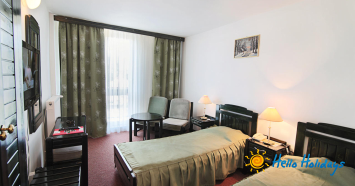 HOTEL: Amplasat in statiunea Covasna.CAMERE: 120 spatii de cazare structurate in camere duble dotate cu grup sanitar, TV, telefon.