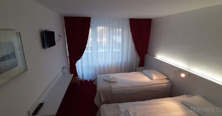 Hotelul dispune de o piscina interioara si una exterioara Piscina din curtea hotelului dispune de apa termala naturala.