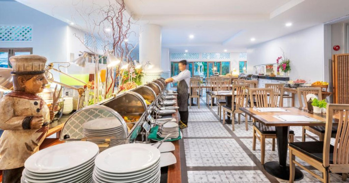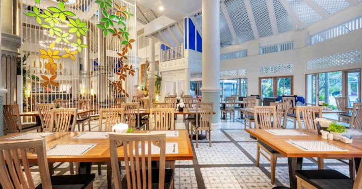Micul dejun este servit la restaurantul Greenary, iar restaurantul Rotissary oferă preparate thailandeze și vedere la golful Nopparat Thara. Băuturi răcoritoare sunt disponibile la barul de la piscină Pavilion și la barul Cat's Eye.