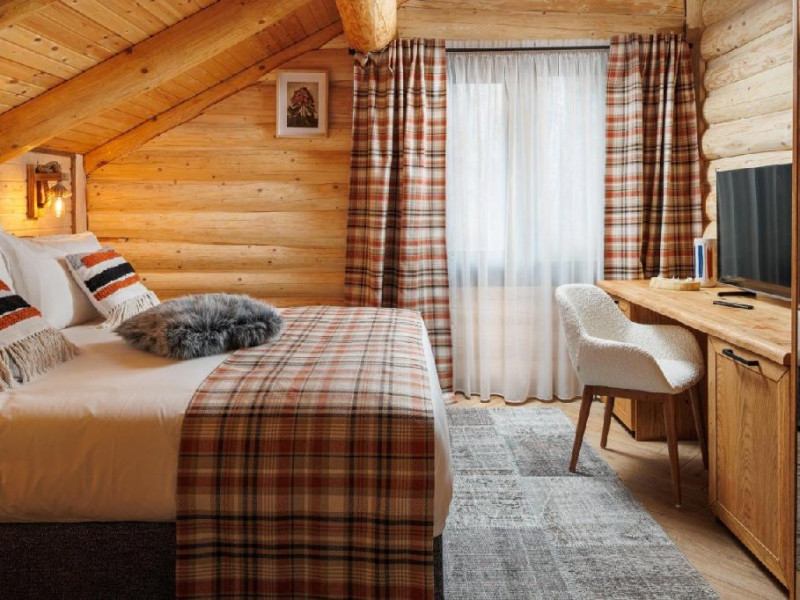 Fiecare cabana dispune de 4 dormitoare cu baie proprie, living cu canapea, chicineta si o baie de serviciu. Dotarile moderne si atmosfera cozy iti vor face vacanta mai frumoasa.