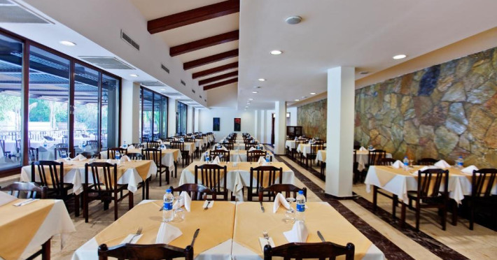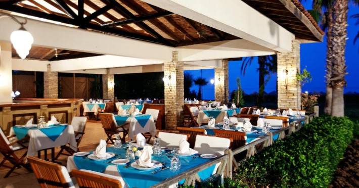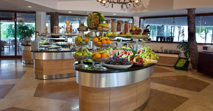 Restaurantul principal oferă produse de panificație, un bufet cu supe, un cuptor de pizza, mese calde, un bar cu salate reci, precum și un bufet cu fructe și desert. Restaurantele à la carte servesc fructe de mare și preparate turcești.