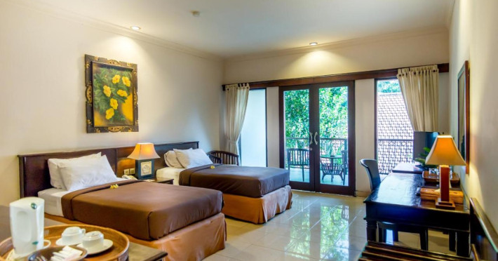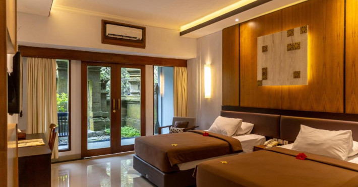 Hotelul Champlung Sari este un refugiu odihnitor situat într-un peisaj verde, la marginea sanctuarului sacru Monkey Forest din Ubud. Este un mediu care hrănește simțurile cu grădinile sale tropicale, care sunt străbătute de două râuri mici. Grupuri de camere confortabile sunt împrăștiate în întreaga proprietate într-un stil care recreează atmosfera unui sat tradițional balinez. Toate nevoile sunt îngrijite în mod corespunzător la Hotelul Champlung Sari cu o serie de servicii și facilități personalizate pentru a îmbunătăți fiecare sejur. Room Services Restaurantul Kamani Sala de ședințe Hanoman 2 piscine Purnama Spa Servicii de spălătorie și curățătorie chimică Transferuri de la aeroport Serviciu de internet Schimb valutar Servicii de turism și călătorie Doctor de gardăDatorita dinamicitatii domeniului disponibilitatea ofertelor se modifica de la un moment la altul. De aceea ofertele sunt valabile in limita locurilor disponibile. Agentia nu este responsabila pentru eventualele neconcordante care pot aparea intre informatiile privind tarifele si alte detalii din site si informatiile primite in agentie. In aceste cazuri vor avea prioritate, intotdeauna, informatiile primite in agentie.