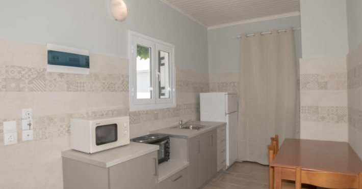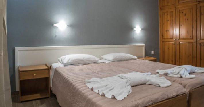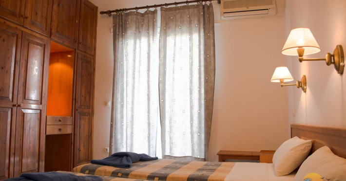 Sunt disponibile 50 camere. În camere există baie cu cadă sau duș prevăzută cu foehn. Camerele confortabile de la Chandris Apartments sunt dotate cu pardoseală de gresie/ marmură, aer condiționat, Tv și seif. Unele camere au balcon cu vedere la grădină sau la piscină. Fiecare cameră dispune de cană-fierbător. Curățenia in cameră se face zilnic. Toate camerele spațioase de la Chandris Apartments au canapea în living, ceea ce oferă un plus de confort. Fiecare unitate de cazare include o chicinetă utilată cu frigider, plită de gătit și ustensile de bucătărie. De asemenea, sunt disponibile o zonă de luat masa și un cuptor cu microunde. Proprietatea oferă camere pentru familie cu o suprafață mai mare și un număr mai mare de paturi față de cele standard. Se pot rezerva de asemenea camere pentru nefumători.