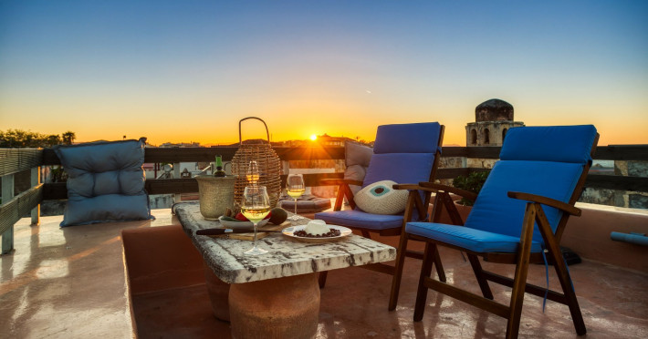 An amazing brand new Designer Loft with sea view balcony located in the first floor of a venetian stone house. This luxury apartment is located in the heart of Chania town and only 30 meters from the sea & the famous Koum Kapi Beach Sea Front Promenade. From its balcony you can see the sea ( side view ). It offers easy access by foot to Chanias old town, the Venetian harbour and Chania City Center. Ideal for your Chania City break !Datorita dinamicitatii domeniului disponibilitatea ofertelor se modifica de la un moment la altul. De aceea ofertele sunt valabile in limita locurilor disponibile. Agentia nu este responsabila pentru eventualele neconcordante care pot aparea intre informatiile privind tarifele si alte detalii din site si informatiile primite in agentie. In aceste cazuri vor avea prioritate, intotdeauna, informatiile primite in agentie.